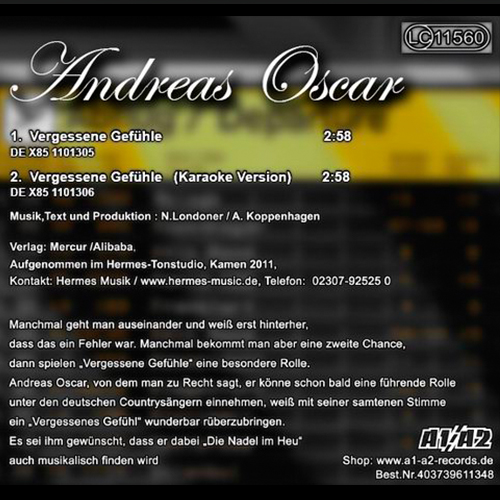 1. Vergessene Gefühle 2:58 min. ISRC : DE X85 11 01305